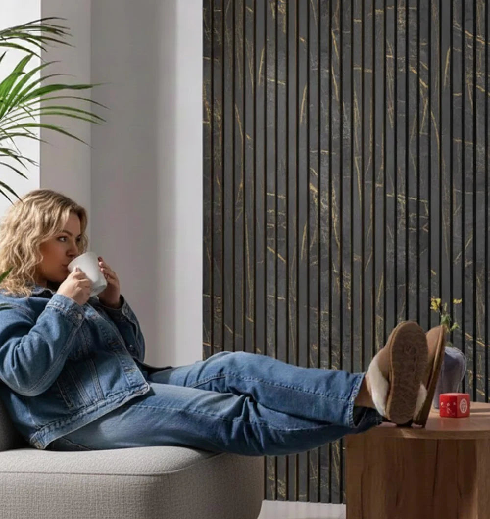 Transform your space with our Premium Black & Gold Marble Acoustic Slatted Wall Panels, the perfect blend of luxury design, acoustic performance, and affordability. Ideal for living rooms, hallways, offices, studios, and feature walls, these panels bring elegance and functionality to any interior.